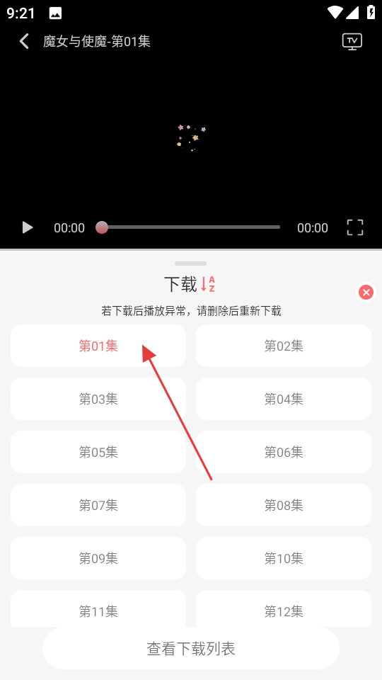 4、在下載選集頁面,選擇第1集,即可開始下載該集。