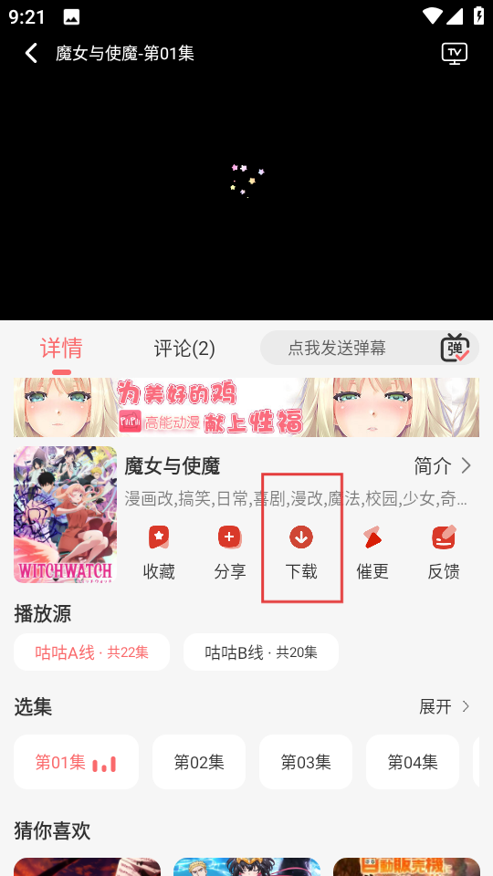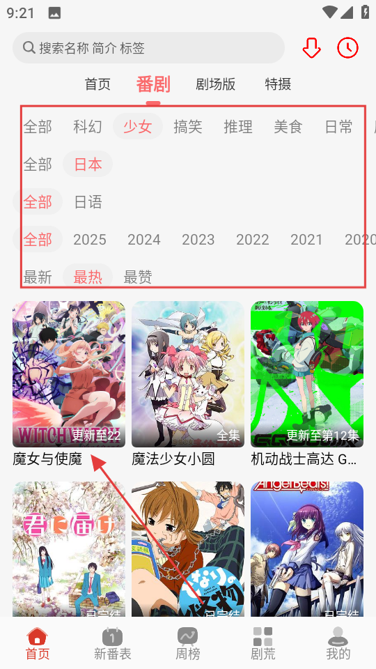 2、在番劇篩選頁面,篩選想看的條件,找到魔女與使魔,進入該劇集頁面。