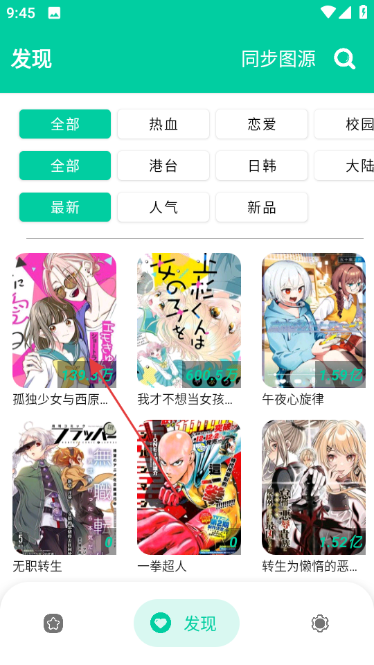 1、在漫畫類應(yīng)用中,點(diǎn)擊底部發(fā)現(xiàn)圖標(biāo),進(jìn)入發(fā)現(xiàn)頁(yè)面。
