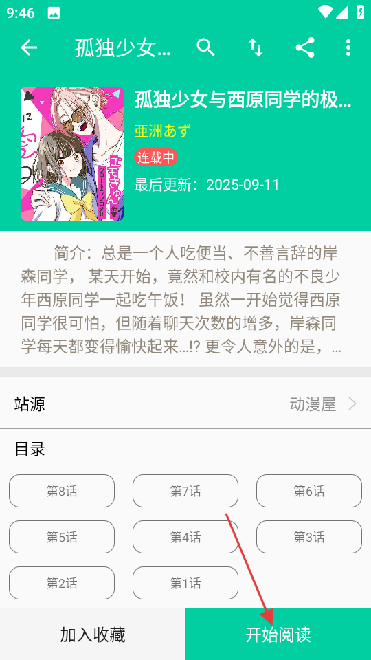 4、在詳情頁(yè)面,點(diǎn)擊開始閱讀,即可閱讀該漫畫內(nèi)容。