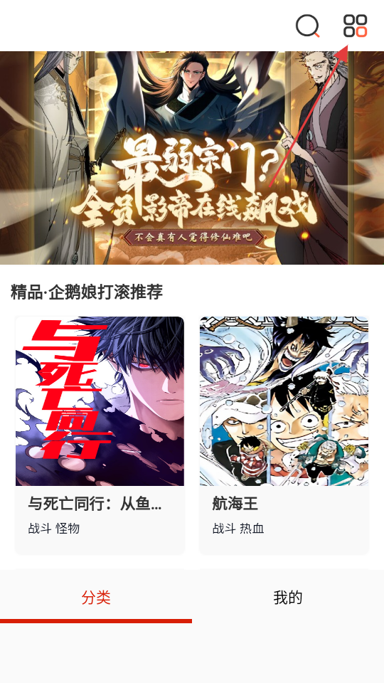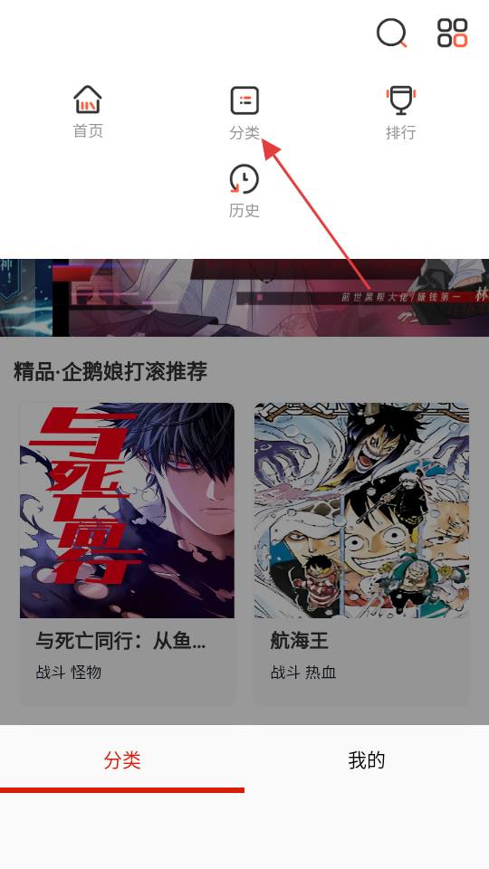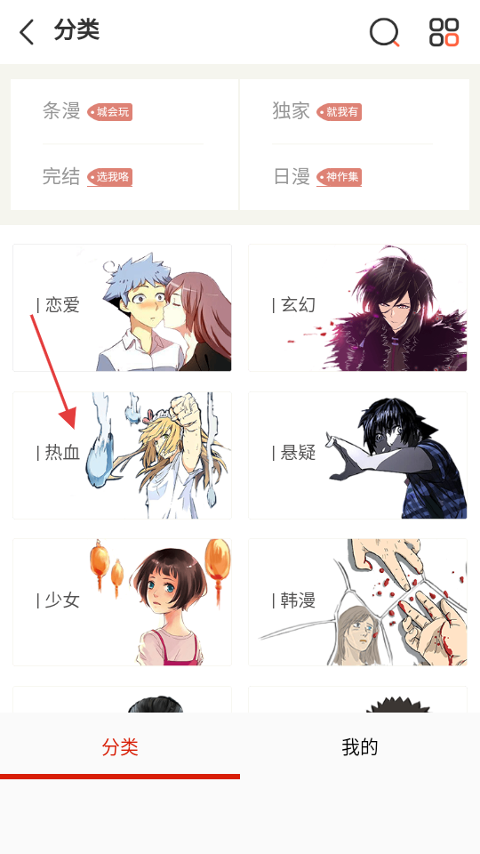 3、在分類頁面,選擇熱血分類,進(jìn)入熱血類內(nèi)容頁面。