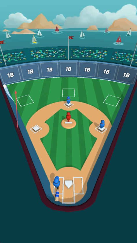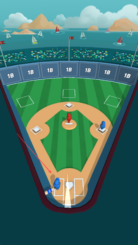 3、成功擊中球后,棒球會飛向場地,根據(jù)球飛行的方向和落點(diǎn),角色會自動或需要玩家操作來跑壘。