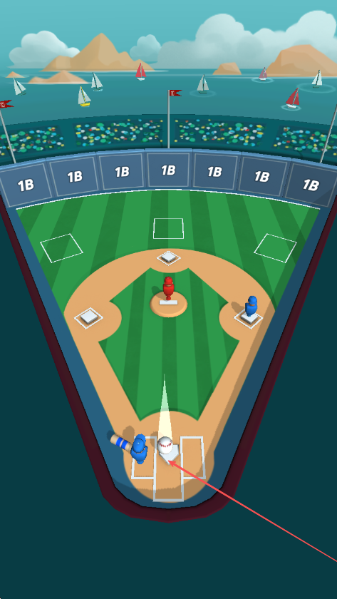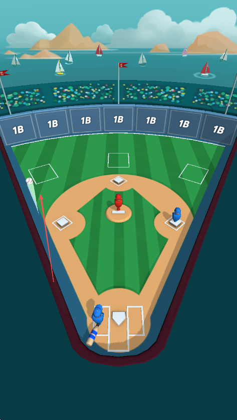 2、當(dāng)紅色投手投出棒球時,把握時機(jī)點(diǎn)擊屏幕或相應(yīng)操作按鈕進(jìn)行揮棒擊球。
