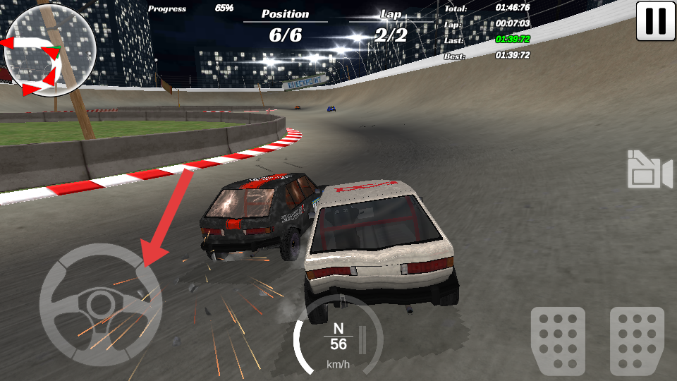 2、核心碰撞與競(jìng)速:選擇賽道模式后開(kāi)啟對(duì)局,通過(guò)選定的操控方式控制車輛移動(dòng)與加速,在賽道中尋找時(shí)機(jī)沖撞對(duì)手,利用摧毀敵方車輛,兼顧位置避免被撞擊。