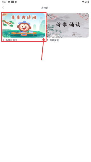3、在古詩詞內(nèi)容列表里,點擊多多古詩詞,進入多多古詩詞的具體內(nèi)容頁。