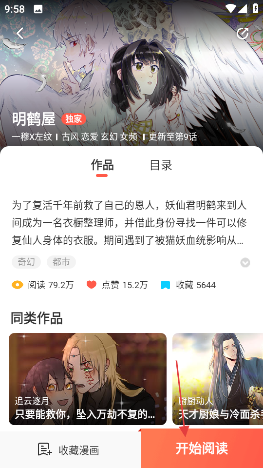 3、進(jìn)入明鶴屋詳情頁后,點(diǎn)擊開始閱讀按鈕,即可開始閱讀該漫畫。
