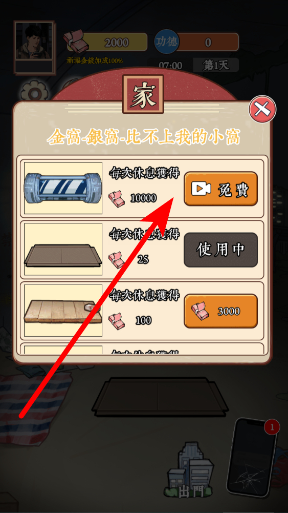 2、可以免費(fèi)建造,在家的界面,能看到可建造的項(xiàng)目,其中有免費(fèi)建造的選項(xiàng),點(diǎn)擊后能獲得相應(yīng)的收益,助力后續(xù)發(fā)展。
