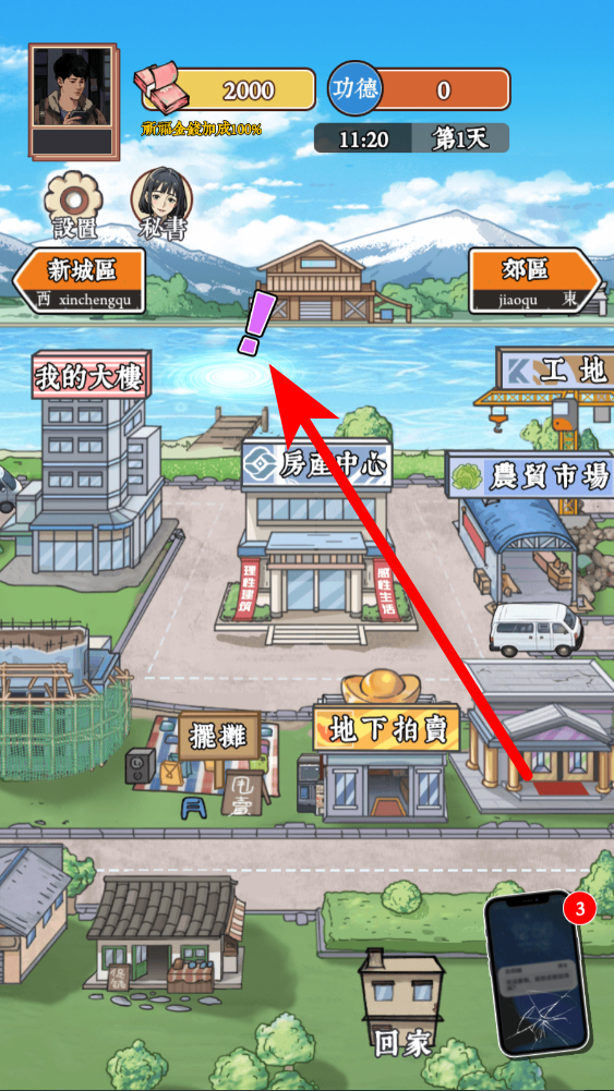 1、看見左下手機(jī)點(diǎn)擊進(jìn)去,玩家進(jìn)入后,通過晃動(dòng)手機(jī),然后點(diǎn)擊相應(yīng)區(qū)域,即可進(jìn)入到游戲的界面,開啟逆襲的旅程。