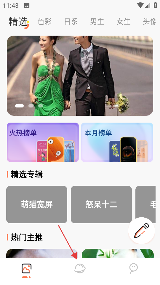 1、在氣泡壁紙首頁點(diǎn)擊底部中間圖標(biāo),進(jìn)入新頁面。