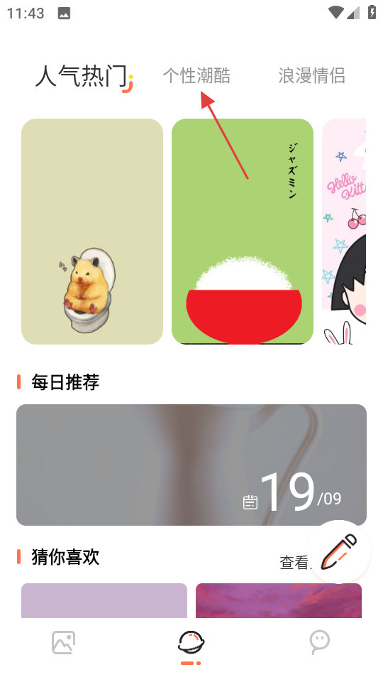 3、在個(gè)性潮酷類內(nèi)容中,選擇喜歡的壁紙,進(jìn)入壁紙?jiān)斍轫撁妗?