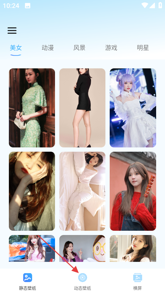 1、在靜態(tài)壁紙頁面,點擊底部的動態(tài)壁紙按鈕,進入動態(tài)壁紙頁面。
