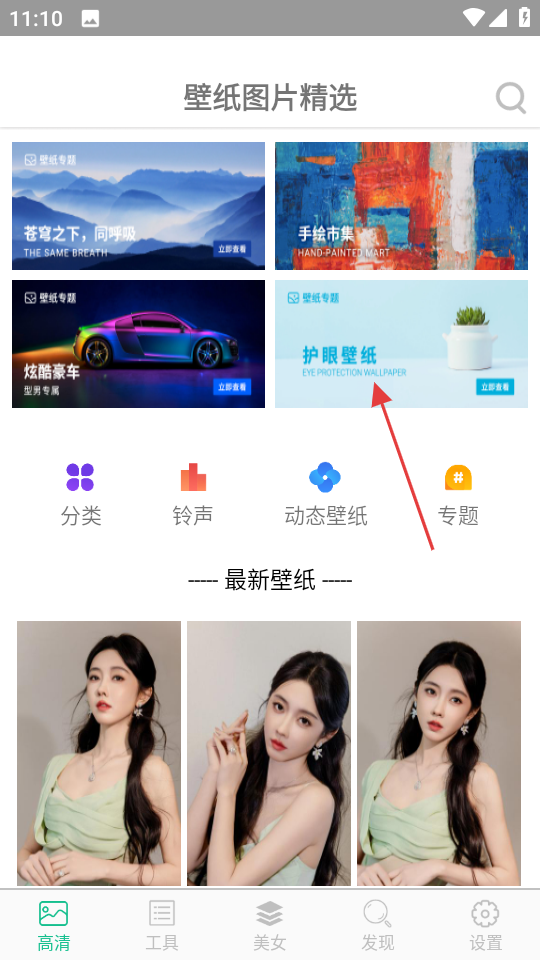 1、在壁紙圖片精選頁面,點擊護眼壁紙專題,進入護眼壁紙頁面。