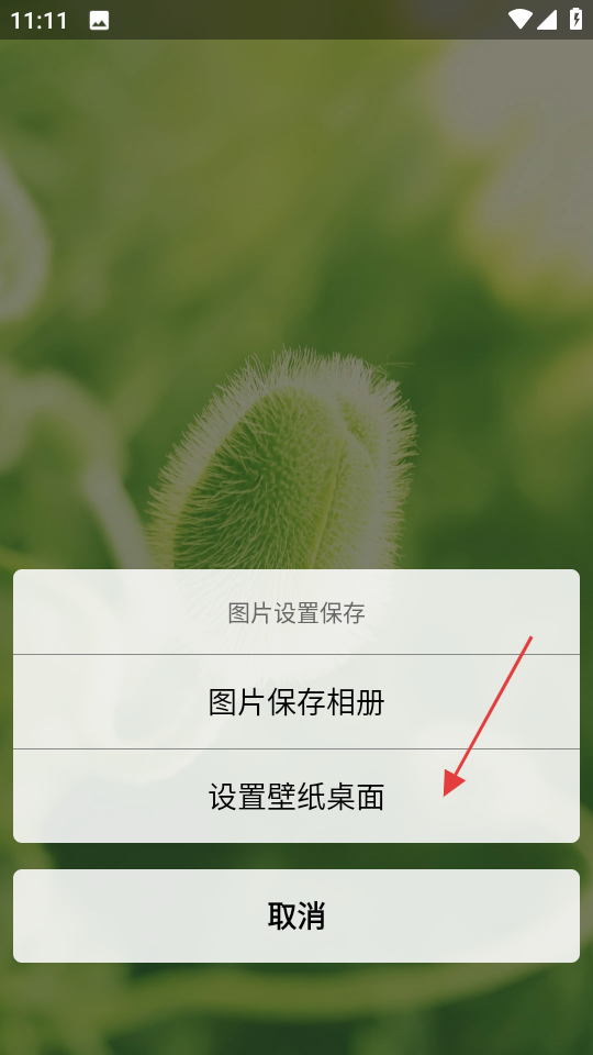4、在操作選項框中,點擊設置壁紙桌面,將該護眼壁紙設為桌面壁紙。