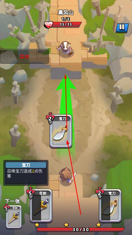 1、進(jìn)入黑風(fēng)山等關(guān)卡后,選擇卡牌對(duì)怪物發(fā)起攻擊,這是開啟戰(zhàn)斗的關(guān)鍵操作。