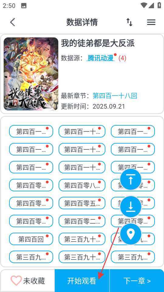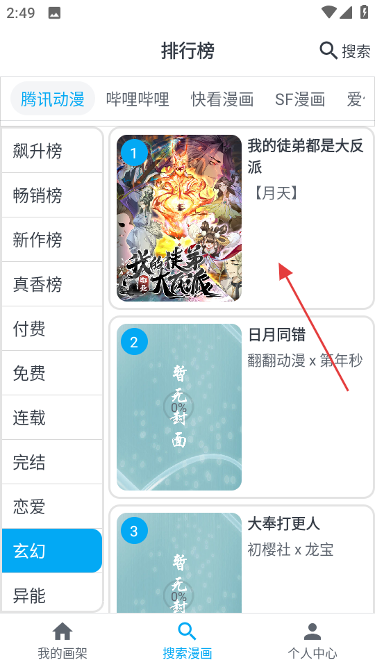 3、在玄幻類漫畫排行中,選擇喜歡的漫畫如我的徒弟都是大反派,進(jìn)入該漫畫數(shù)據(jù)詳情頁。