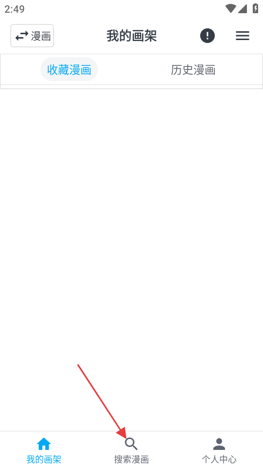 1、在我的畫架頁面,點(diǎn)擊底部的搜索漫畫,進(jìn)入排行榜頁面。
