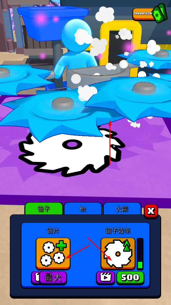 2、進(jìn)入武器系統(tǒng),升級鋸片數(shù)量與鋸子效率,增強切割能力,應(yīng)對更密集的目標(biāo)。