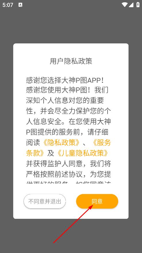 1、在用戶隱私政策彈窗中,點擊同意,進入應用。