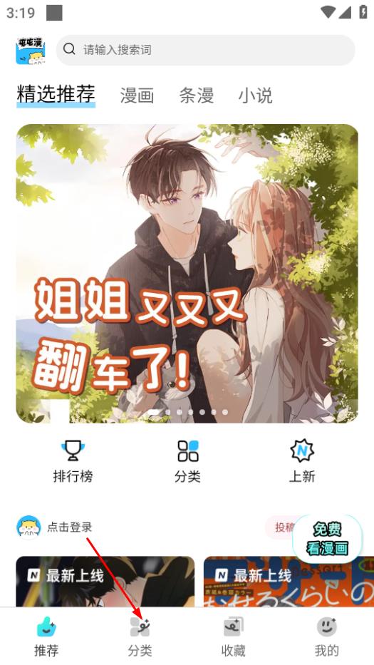 1、打開屯屯漫畫,點擊頁面底部的分類,進入分類頁面。
