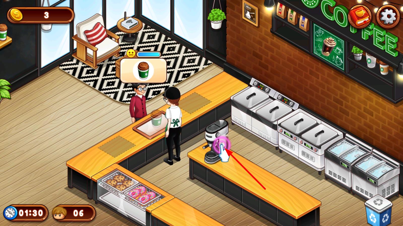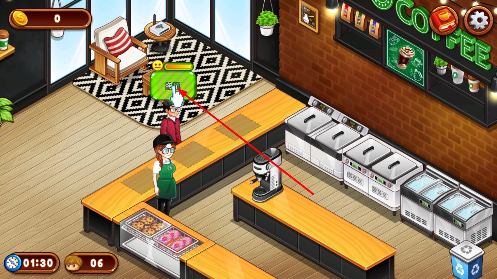 2、在咖啡店內(nèi)部,看到顧客頭頂?shù)慕訂伟粹o,點(diǎn)擊該按鈕接收顧客的訂單。