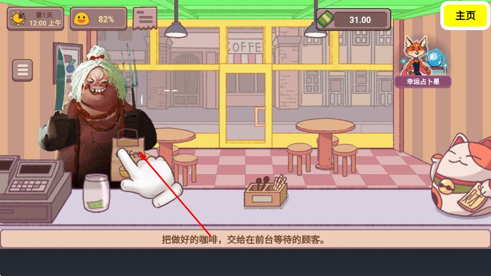 3、將制作好的咖啡交給在前臺(tái)等待的顧客,完成服務(wù)環(huán)節(jié),推進(jìn)經(jīng)營(yíng)進(jìn)程。