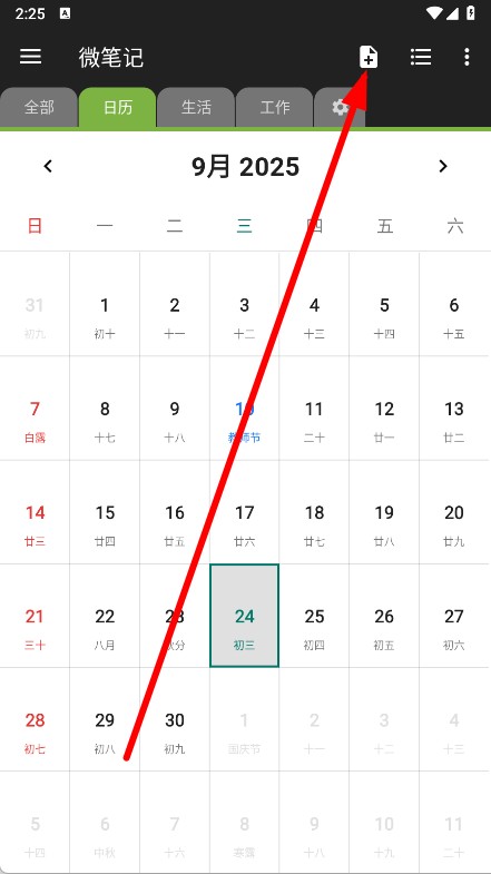 1、打開微筆記,點(diǎn)擊右上角的加號圖標(biāo)創(chuàng)建新筆記。