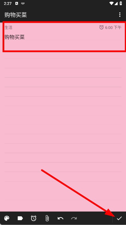4、設(shè)置完成后,點(diǎn)擊右下角的對勾圖標(biāo),保存筆記及提醒設(shè)置。