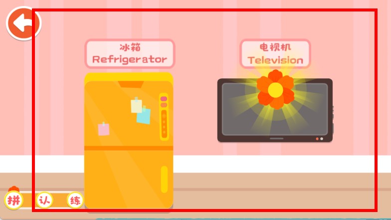 4、完成拼圖后,即可認(rèn)識對應(yīng)的家用電器,并學(xué)習(xí)它們的中英文名稱。