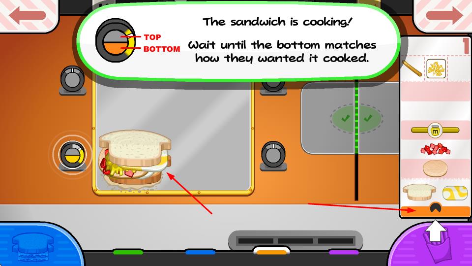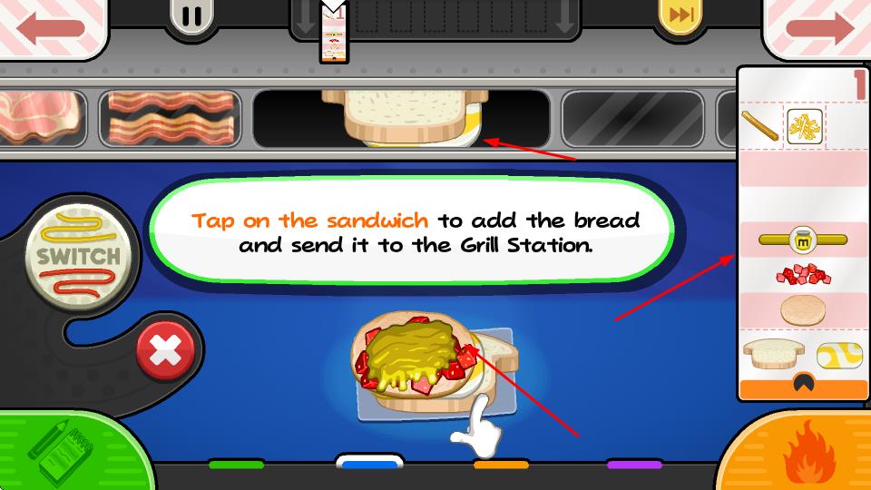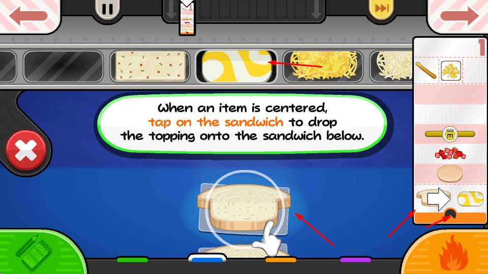 1、當(dāng)食材居中時,點擊三明治,把配料放到下方三明治上,這是制作的基礎(chǔ)操作。