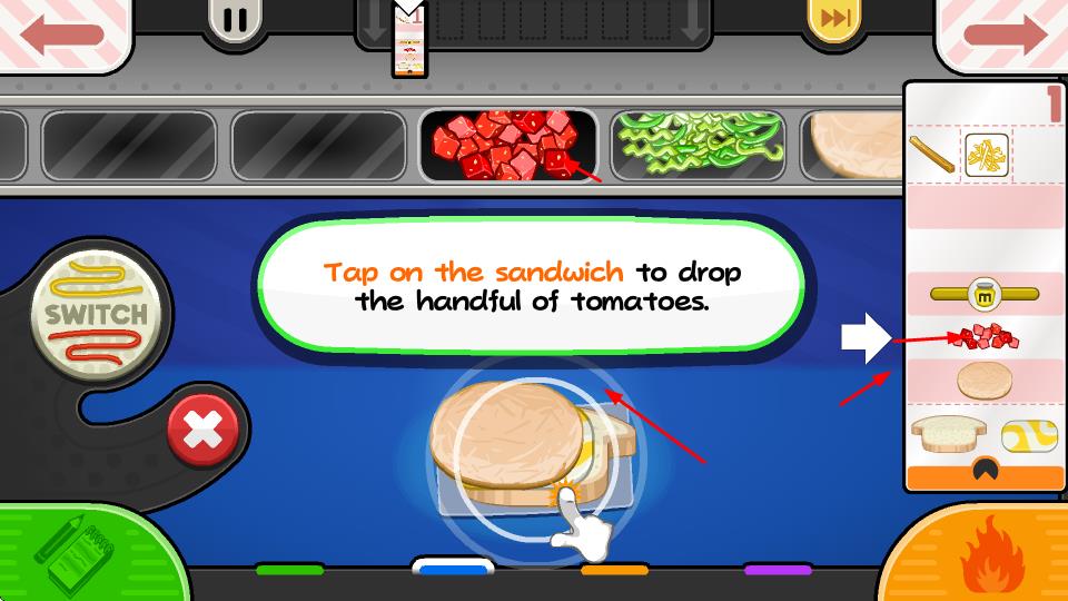 2、點擊三明治,添加番茄丁等配料,逐步豐富三明治食材,讓三明治更美味。