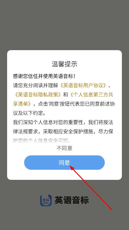 1、在溫馨提示彈窗中,點(diǎn)擊同意,進(jìn)入登錄頁(yè)面。