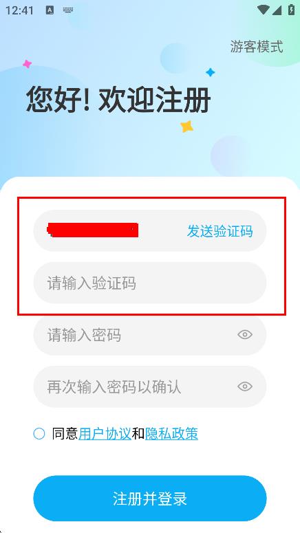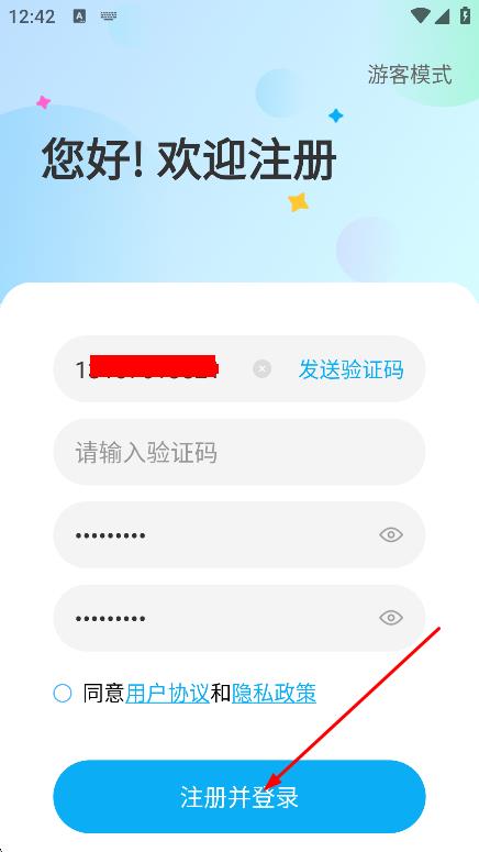4、勾選同意用戶(hù)協(xié)議和隱私政策后,點(diǎn)擊注冊(cè)并登錄,完成注冊(cè)登錄。