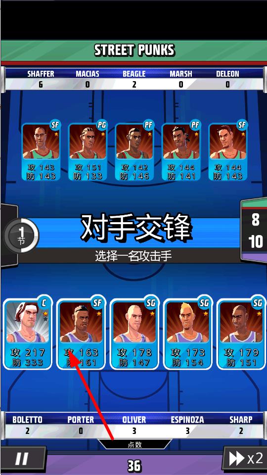 1、在對手交鋒的環(huán)節(jié),屬性高球員如攻163的SF球員作為攻擊手,可以提升了進攻的成功率。