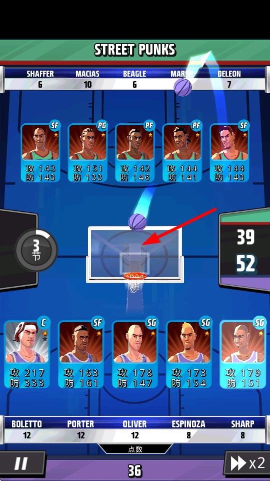 2、在比賽過程中,參與者需要操控球員完成投籃動作,精準(zhǔn)投籃可有效得分,積累比賽的優(yōu)勢。