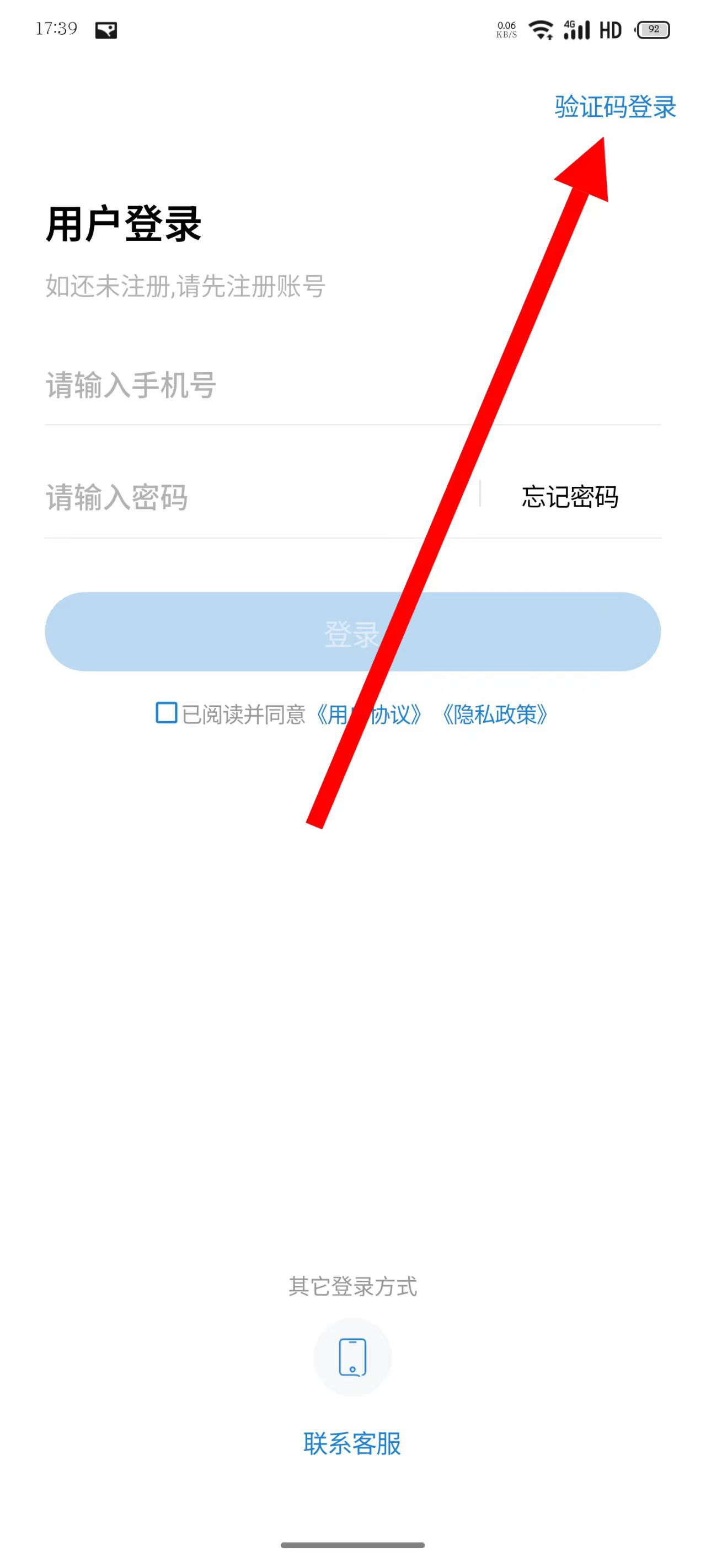 2、進(jìn)入用戶登錄頁面后,點擊右上角驗證碼登錄。