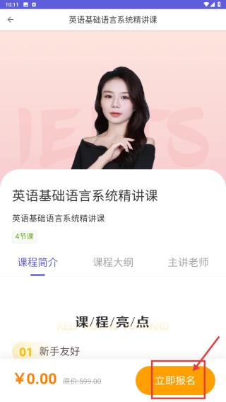 3、在課程詳情頁(yè),點(diǎn)擊立即報(bào)名按鈕,完成課程報(bào)名操作。
