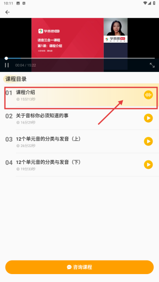 4、在課程學(xué)習(xí)頁(yè),點(diǎn)擊課程介紹選項(xiàng),開(kāi)始課程學(xué)習(xí)。