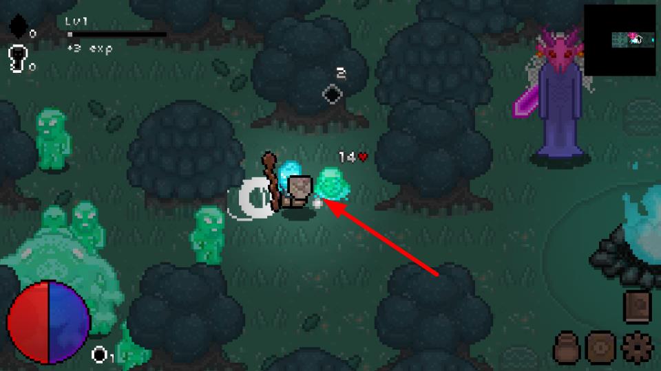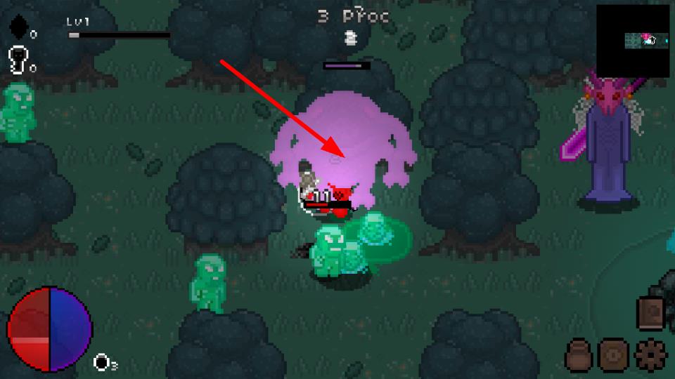 4、操控角色攻擊箭頭指向的紫色怪物,可對(duì)其造成傷害,擊敗怪物后能獲取經(jīng)驗(yàn)和道具,提升角色實(shí)力。
