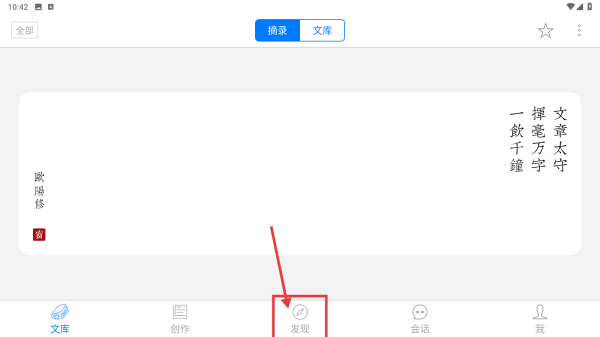 1、打開文學(xué)類APP,點擊底部發(fā)現(xiàn)選項,進(jìn)入發(fā)現(xiàn)板塊頁面。