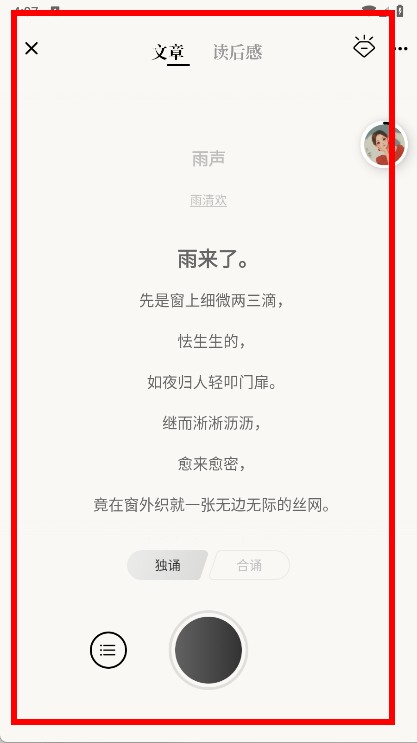 4、點(diǎn)擊文章即可查看文章內(nèi)容,進(jìn)行誦讀。