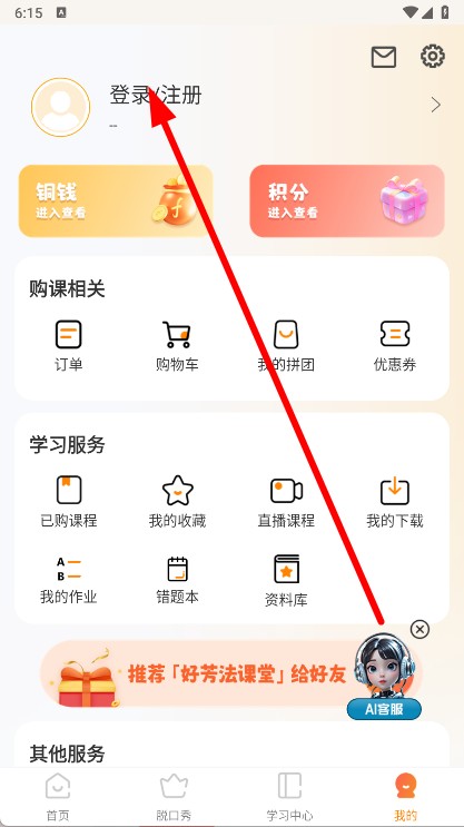 2、在我的頁面,點(diǎn)擊登錄注冊。