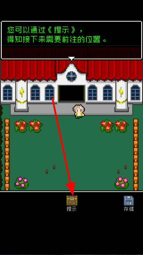 4、若不清楚接下來(lái)要前往的位置,可點(diǎn)擊提示,通過(guò)提示獲取需要前往的位置信息,明確冒險(xiǎn)方向,更高效地推進(jìn)游戲。