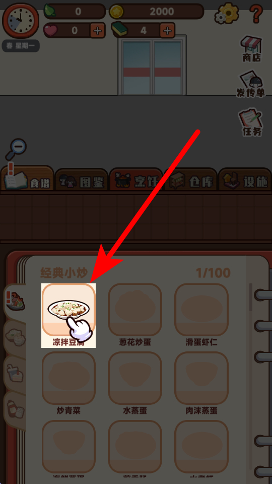 1、菜品方面,可進(jìn)入食譜界面,選擇像涼拌豆腐這類(lèi)菜品,可售賣(mài)此菜品。