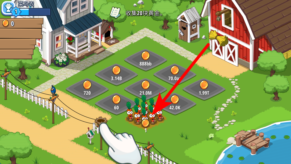 3、種植作物后,要留意收集資源的任務(wù),像收集黃金等,通過收獲胡蘿卜作物等方式獲取資源,完成收集任務(wù),推動(dòng)農(nóng)場(chǎng)發(fā)展。
