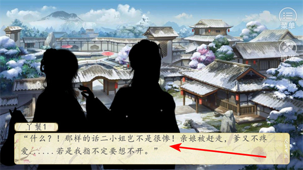 2、閱讀丫鬟的對話內容,了解游戲的背景故事,對話中揭示了二小姐的處境,為劇情發(fā)展和角色選擇提供線索。
