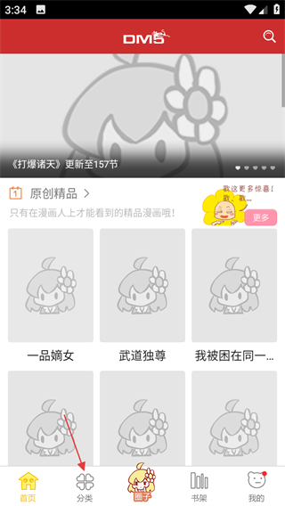 1、在動(dòng)漫屋首頁點(diǎn)擊頁面底部的分類,進(jìn)入分類頁面。
