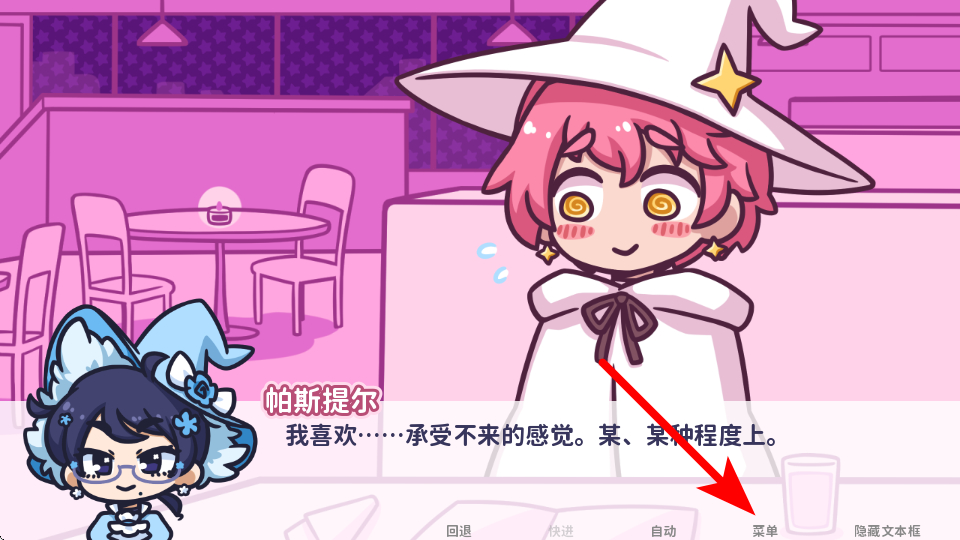 3、在游戲的劇情界面,我們可以選擇點(diǎn)擊底部的菜單,進(jìn)入功能菜單的頁面。