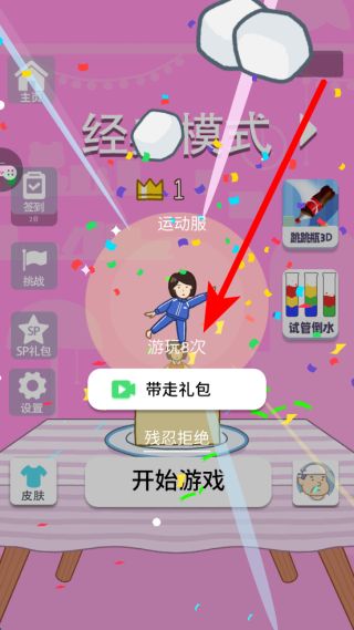 4、游戲游玩到一定次數(shù)后,能根據(jù)下圖選擇帶走禮包獲取獎(jiǎng)勵(lì),也可殘忍拒絕,點(diǎn)擊繼續(xù)開啟經(jīng)典游戲。
