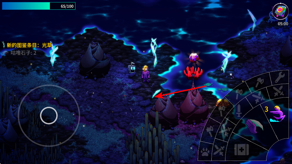 2、靠近場(chǎng)景中的光草等植物,可觸發(fā)互動(dòng),獲取資源或解鎖新的圖鑒條目,豐富游戲探索的內(nèi)容。