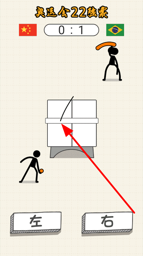2、對(duì)戰(zhàn)過程中,當(dāng)對(duì)手擊球過來時(shí),觀察球的軌跡,根據(jù)提示,點(diǎn)擊左或右按鈕,控制角色移動(dòng)到合適位置,準(zhǔn)備擊球。